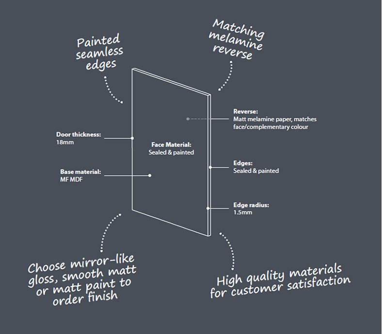 - Reverse: Matt melamine paper matches face, complimentary colour.