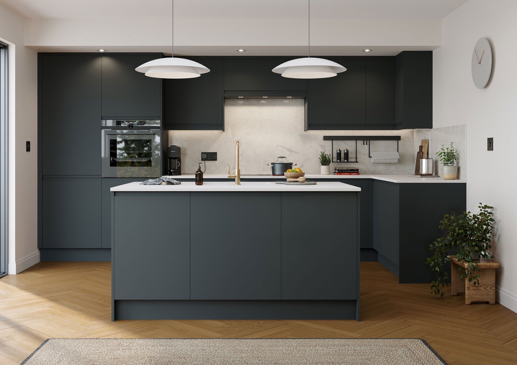 Senza Matt Charcoal Integrated Handle Kitchen Cabinets create a contemporary look with this modern tactile matt colour.