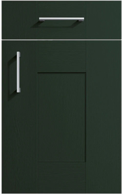 Cartmel Fir Green Shaker Kitchen Doors & Drawer Fronts in the new tone of fir green offers warmth and versatility for accessory colours in particular, Antique brass and gold handles work perfectly along with oak flooring and worktops